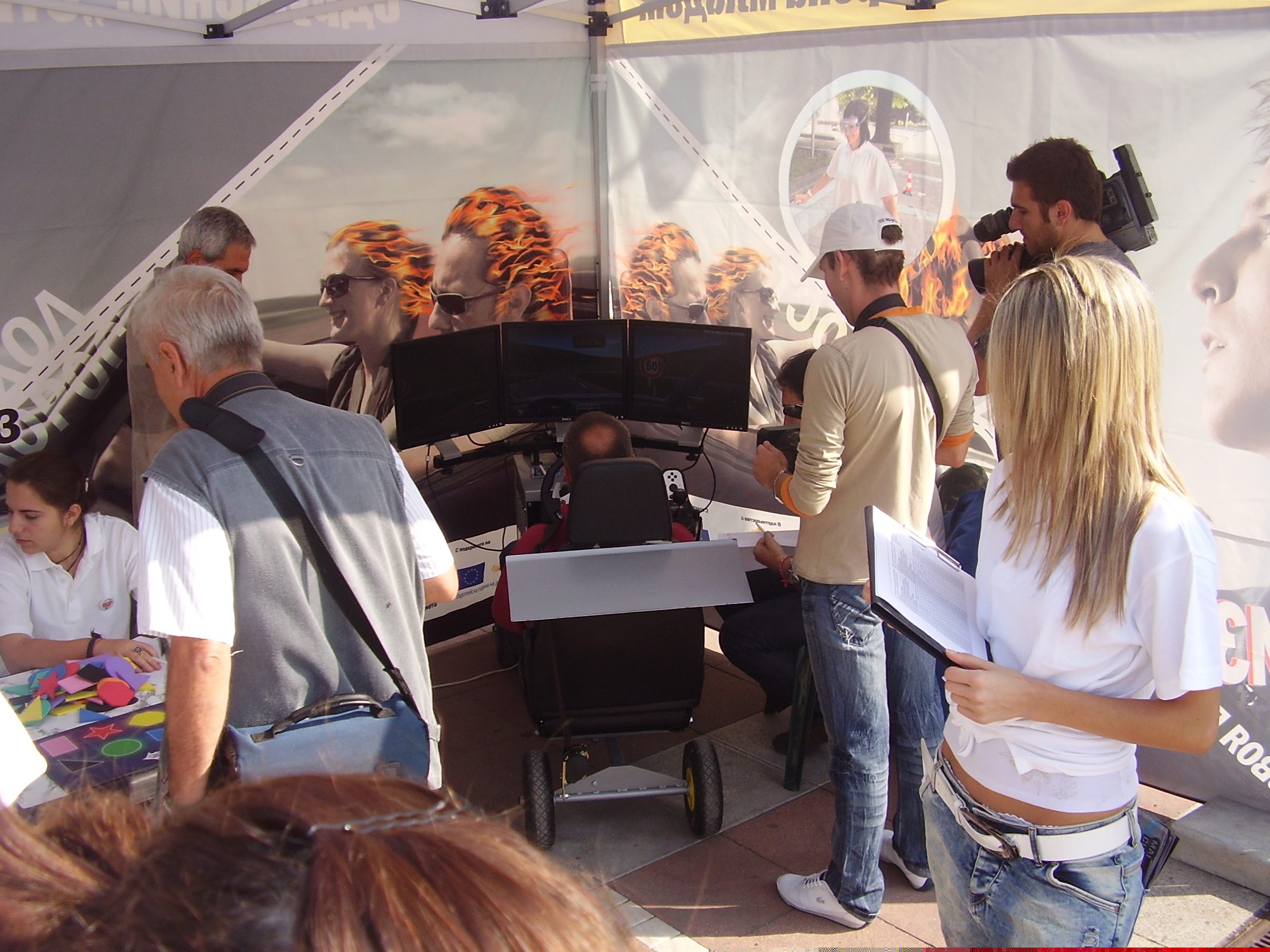The alcogoggles that simulate vision with different concentration of alcohol in the blood (e.g. between 0.7 and 1 promile), allow the participant to experience vision under influence while actually being sober. |